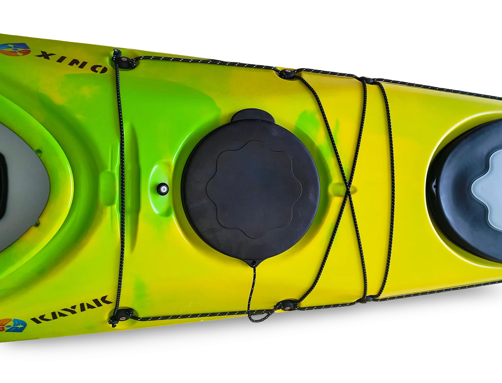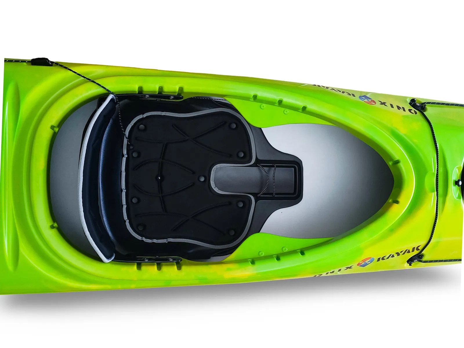 A fedélzeten két evezőtartó is helyet kapott: egy a cockpit előtt, egy pedig mögötte. Emellett elöl és hátul csomagrögzítő gumik, biztonsági kötélzet, fogantyúk, iránytűhely és több praktikus részlet teszi valóban túrázásra alkalmassá.