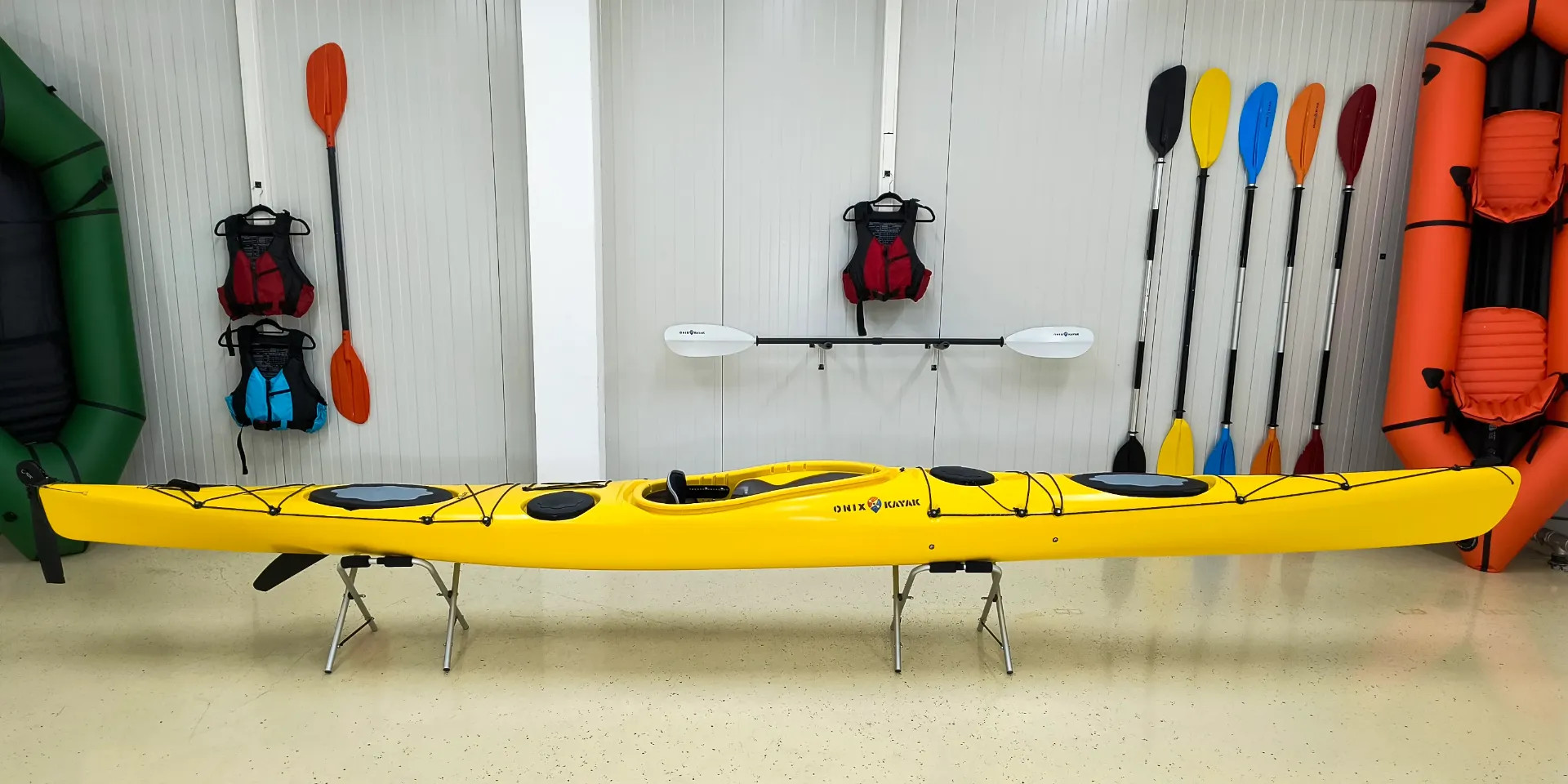 Az ONIX Marlin 530 gyors, hosszú távokra tervezett tengeri túrakajak, surfski ihletésű hajótesttel, kormánnyal, szkeggel és teljes túrafelszereltséggel