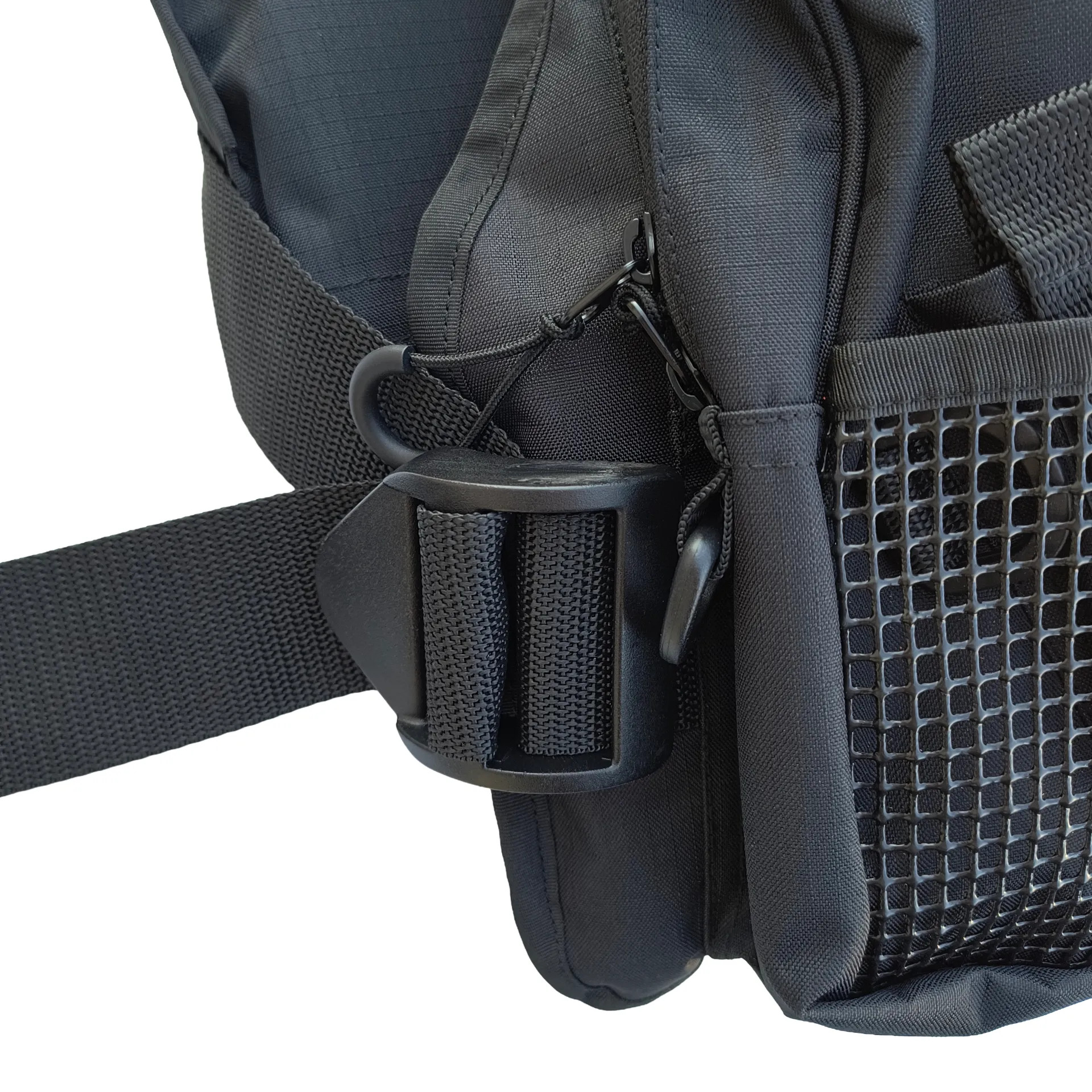 Elöl két nagyobb és két kisebb, cipzáras zseb kapott helyet, emellett több szekcionált tárolórész, D-gyűrű, rögzítőfül és heveder segíti, hogy a szükséges felszerelések rendezettebben és gyorsabban elérhetők maradjanak. A nagyobb első zsebek jól használhatók műcsalis dobozok és más gyakran használt kiegészítők tárolására. Hátul egy nagyobb pakolórekesz is helyet kapott, amely alkalmas lehet például könnyebb ruházat vagy további felszerelés számára.