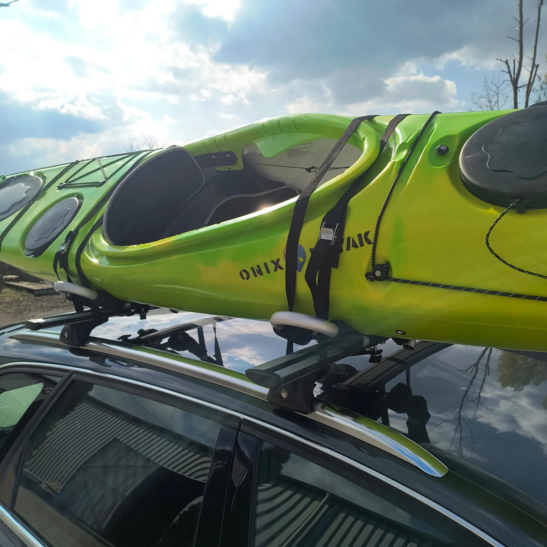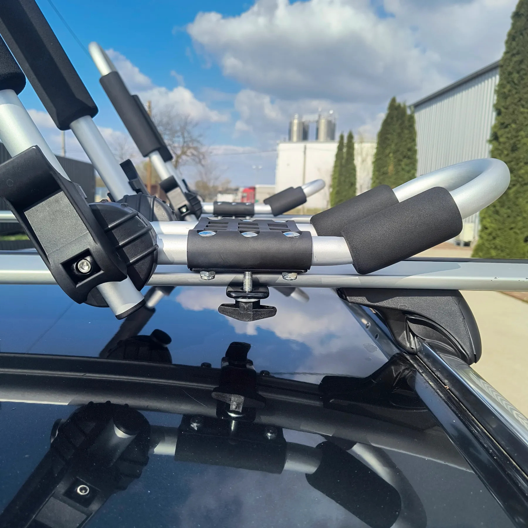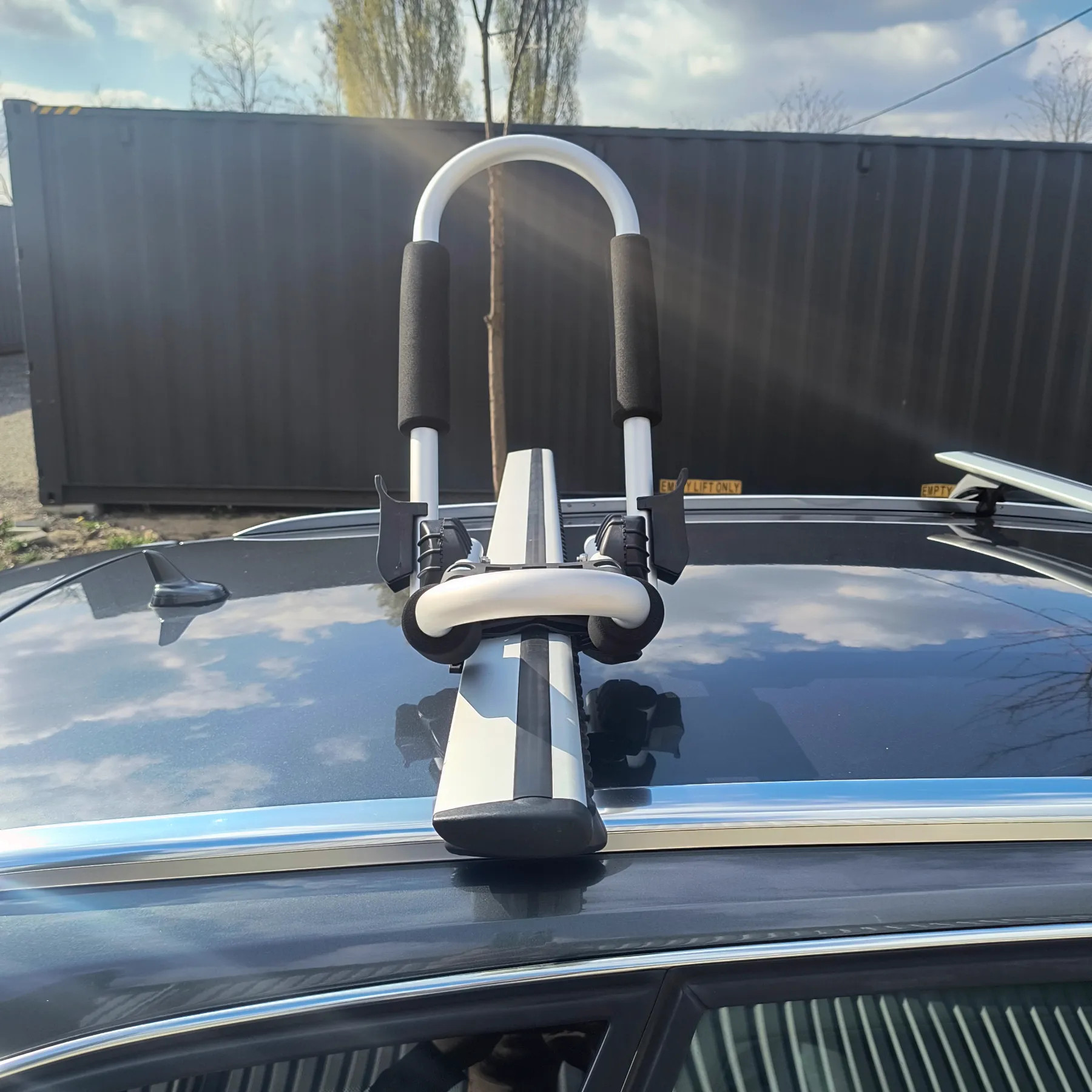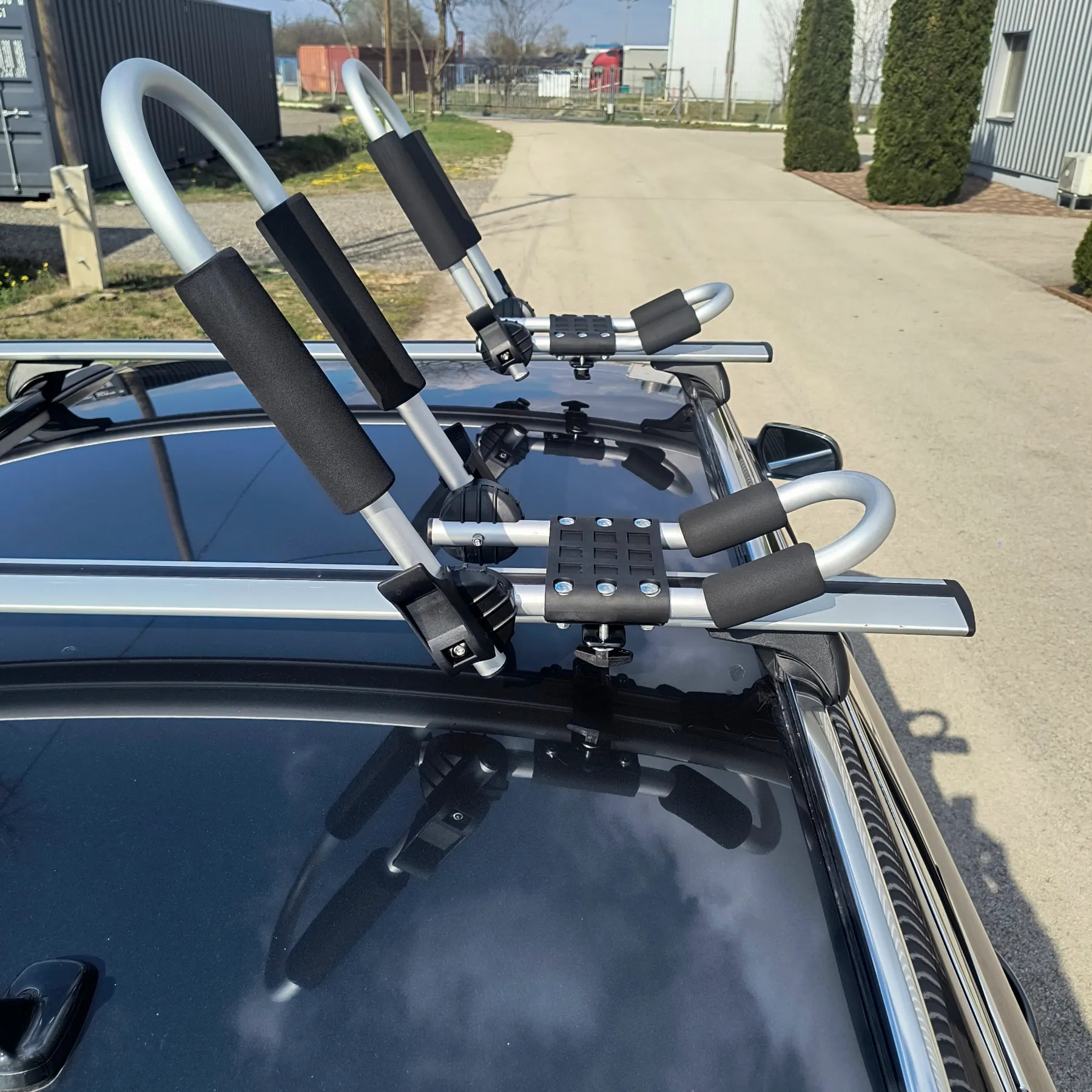 Tetőcsomagtartó keresztlécére szerelhető, állítható, J kialakítású kajaktartó, amely különböző formájú kajakokhoz is jól használható. A csomag rögzítő gurtnikat is tartalmaz, így a szükséges alap tartozékok együtt érkeznek.